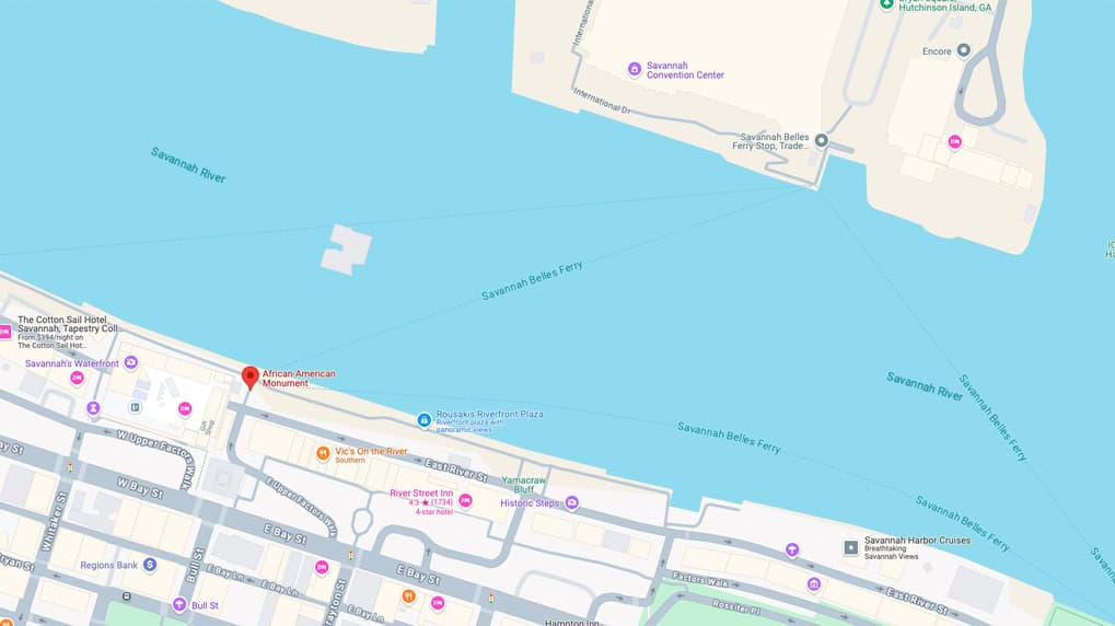 There are places included that are within walking distance of the hotel district and a few others that might require some sort of wheeled transportation. As far as distances go, I measured from the African-American Monument statue just off River Street by the Savannah Belles Ferry Landing.